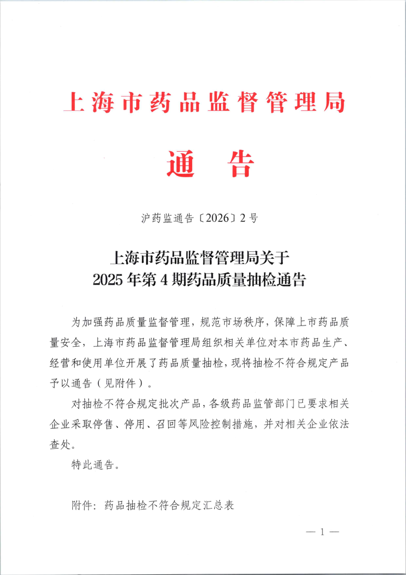 为加强药品质量监督管理,规范市场秩序,保障上市药品质量安全,918博天堂组织相关单位对本市药品生产、经营和使用单位开展了药品质量抽检,现将抽检不符合规定产品予以通告(见附件)。